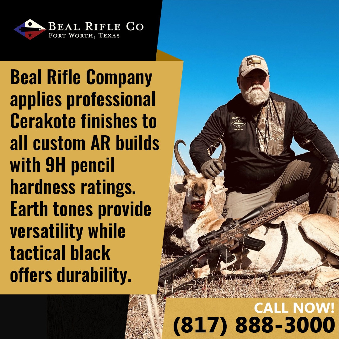 For more information about custom AR build requirements and Cerakote color options, contact Beal Rifle Company at info@bealrifleco.com or (817) 888-3000. The company provides comprehensive warranty coverage and ongoing technical support for all custom-built AR rifles.