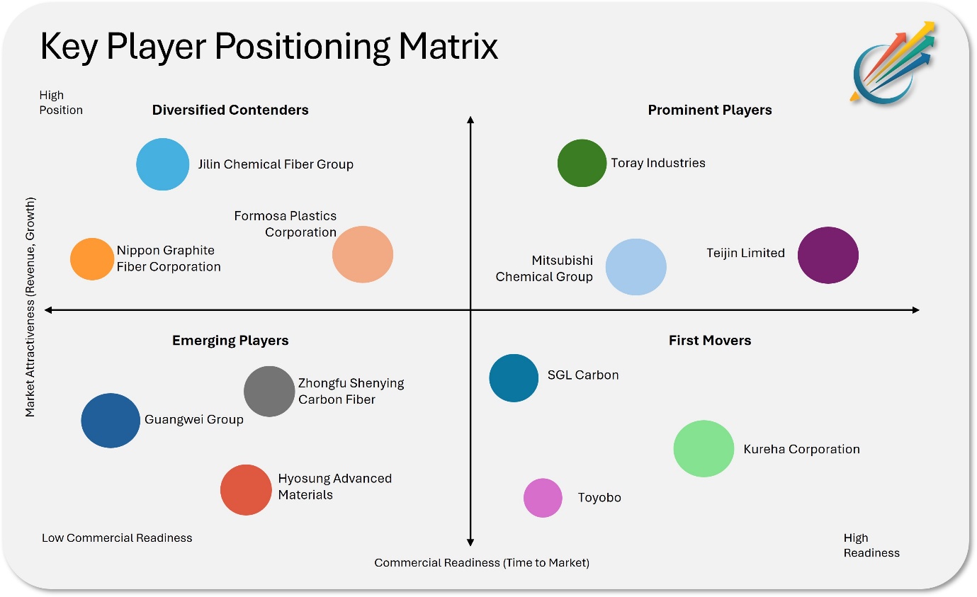 Leading players in carbon fiber market are focusing on capacity expansion, precursor integration, and strategic partnerships with aerospace and wind OEMs. Vertical integration into PAN production is becoming a key strategy to control costs and secure supply. Key players are also entering into long-term strategic alliances with hydrogen tank manufacturers to ensure guaranteed offtake as the market for fuel cells matures. Companies are further investing in recycling technologies and large-tow production lines to penetrate automotive markets.