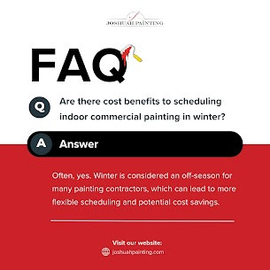 Commercial properties are often subject to specific codes, fire safety, ventilation, and low-VOC requirements. Joshuah Painting ensures every project complies with local, state, and federal guidelines, keeping safety and sustainability top priorities.