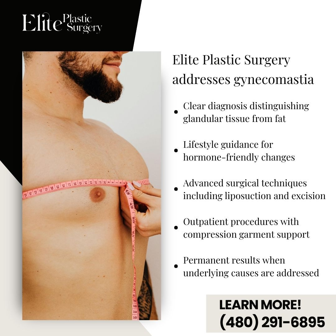Men experiencing persistent chest enlargement deserve clear answers and lasting solutions. At Elite Plastic Surgery, expert evaluation and advanced gynecomastia removal techniques provide proven results. Don’t wait for confidence to return on its own; take control today. Contact them at (480) 291-6895 or contact@epsaz.com to schedule a confidential consultation to explore your gynecomastia treatment options and begin the path to a more defined, masculine chest. This board‑certified plastic surgery practice based in Phoenix, AZ, offers advanced aesthetic and reconstructive procedures.