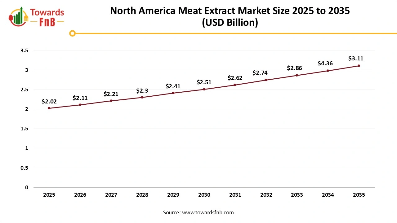 North America led the meat extract market in 2025, due to higher demand for ready-to-eat, ready-to-cook, sauce, soups, and ready-to-drink processed and convenient options, which helped to fuel the growth of the market. Higher demand for protein-rich and fortified options also helps to enhance the market’s growth in the region. The US has made a major contribution to the growth of the market due to higher usage of powdered beef and other meat extracts in different types of soups, sauces, and ready meals, further fueling the growth of the market.